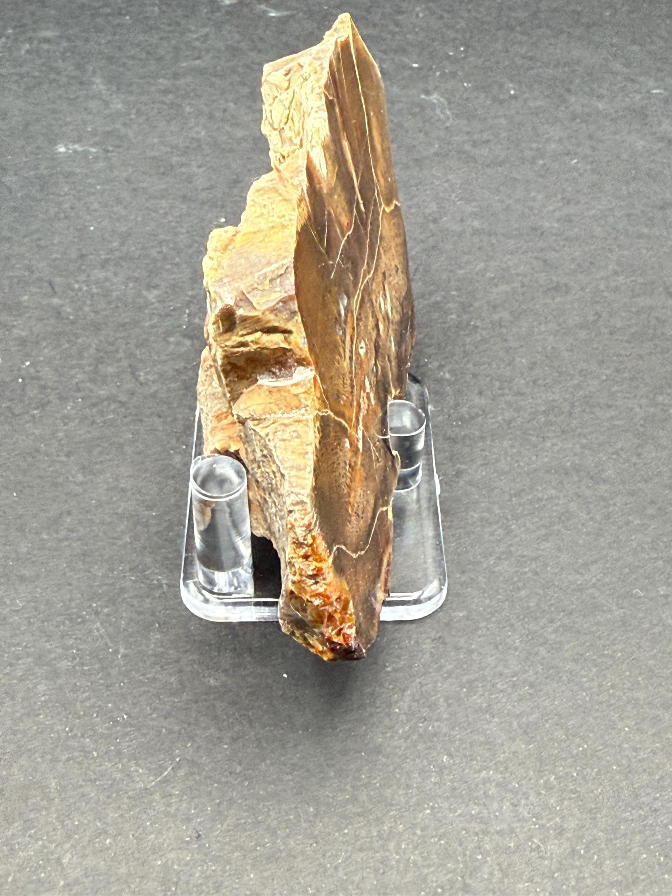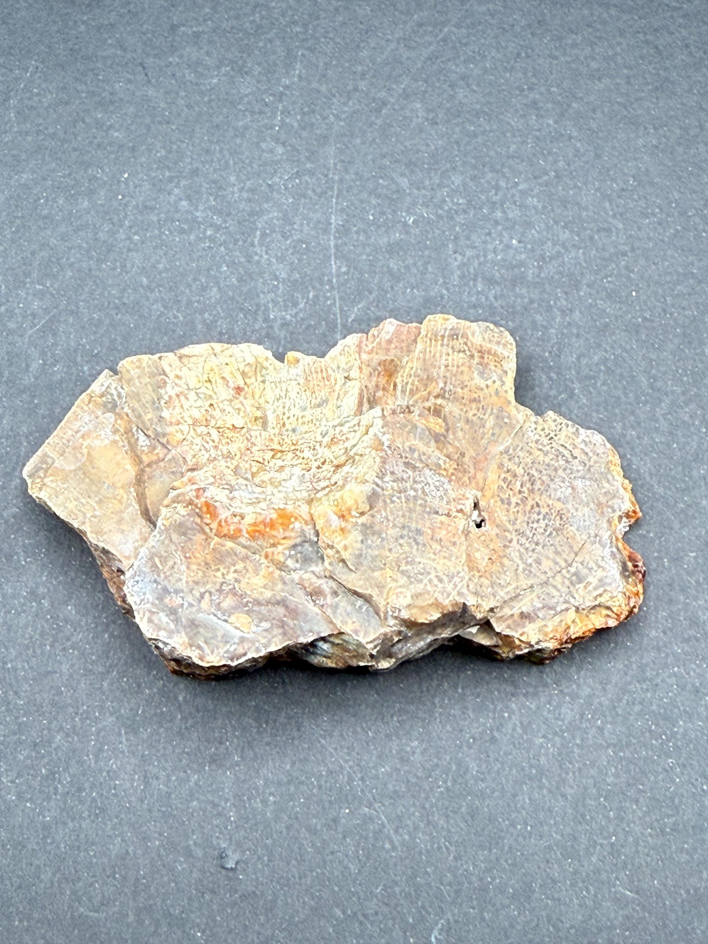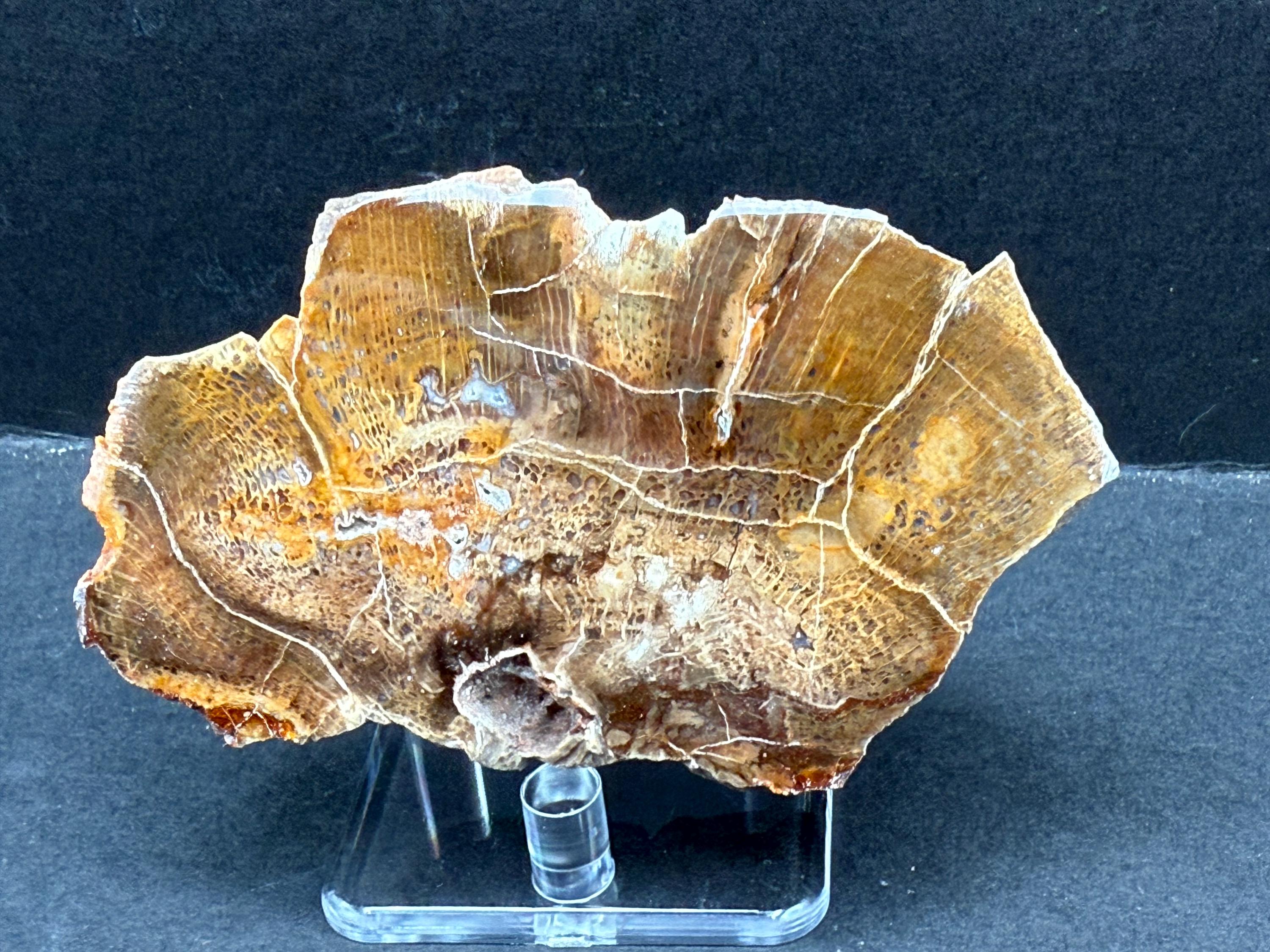 This small piece of petrified wood features gorgeous golden brown and orange hues with uniquely intricate patterning that highlights its ancient origins. Each line and swirl tells a story of time, transformation, and natural beauty. Petrified wood remains one of my favorite materials to dig and work with—its warmth and character make it a timeless addition to any rock, fossil, or natural history collection.