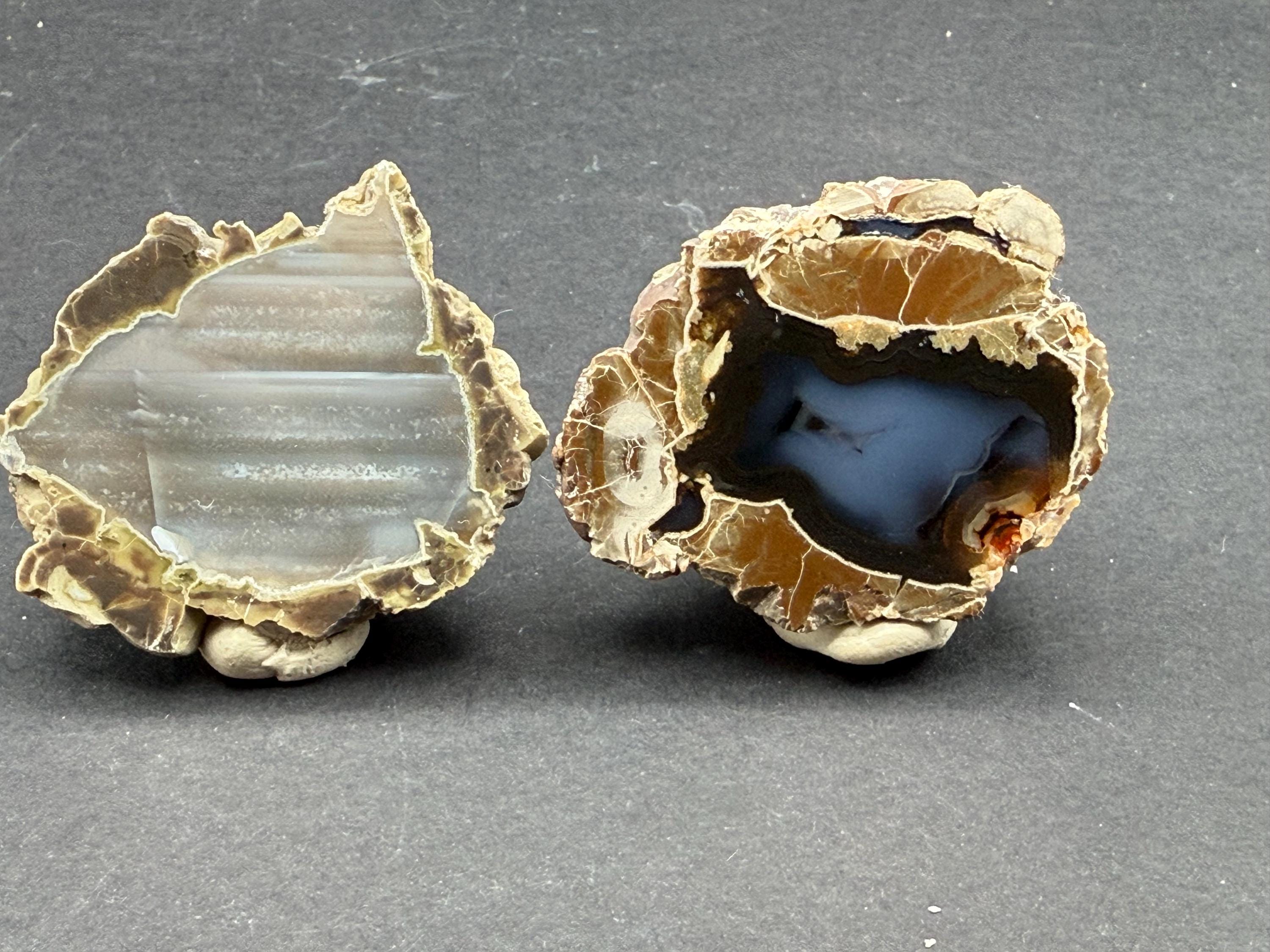 Included in this set: • Secret Ridge — known for its vibrant colors and unique banding • Richardson’s Ranch — includes a classic blue thunderegg and a stunning opal-filled egg • Friends — subtle patterns with warm tones • Buchanan — bold, eye-catching agate centers