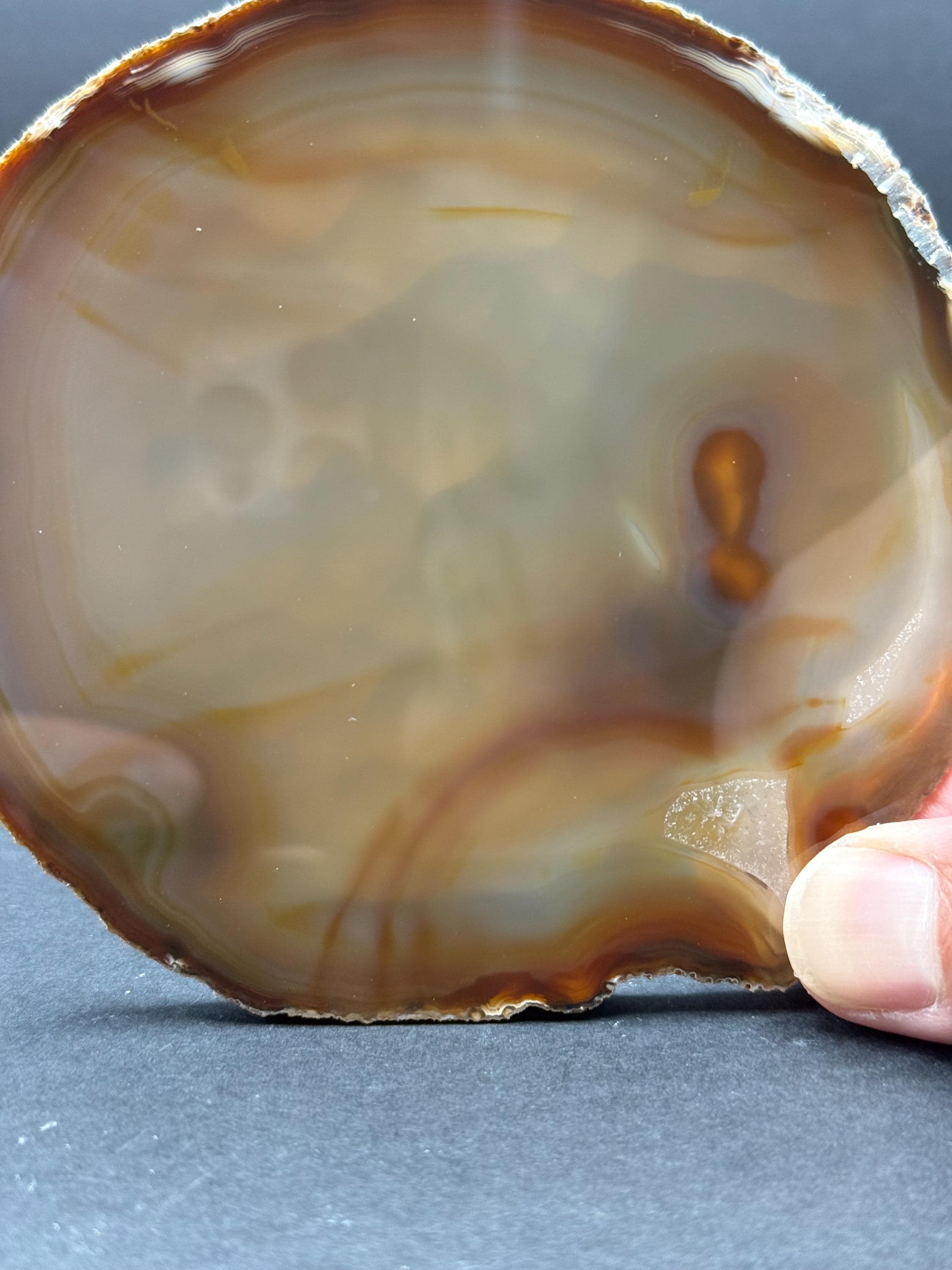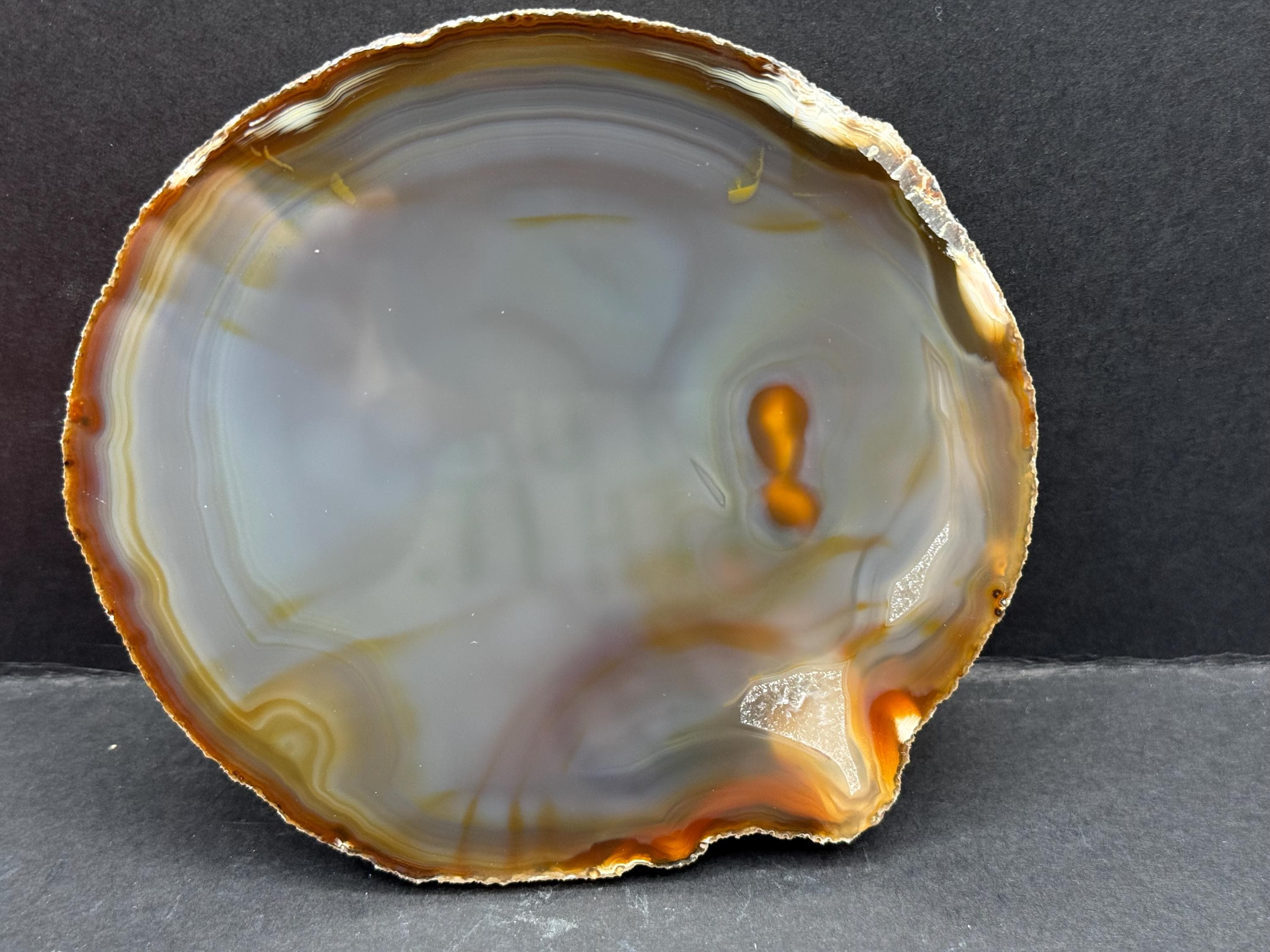 Hand-cut and polished in our Stone Age Workshop studio, this slab is smooth, glossy, and ready for display. Whether you’re a collector, crystal lover, or simply want a unique natural décor piece, this agate brings both beauty and calming energy into any space.